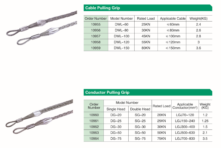 Model | Rated load(KN) | Applicable cable diameter(mm) | Weight(Kg) | ||